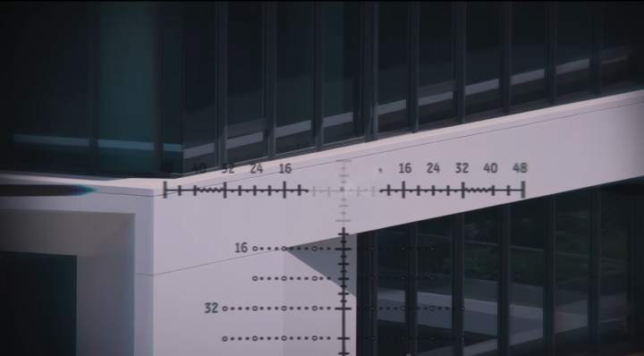 男主拿了一个风车检测风速,他先是试枪,将准心移到了旁边的建筑上,周围嘈杂的人群声掩盖了枪声。一枪,子弹落点偏右上,男主调整狙击镜,又是一枪,这次子弹完美命中准心。